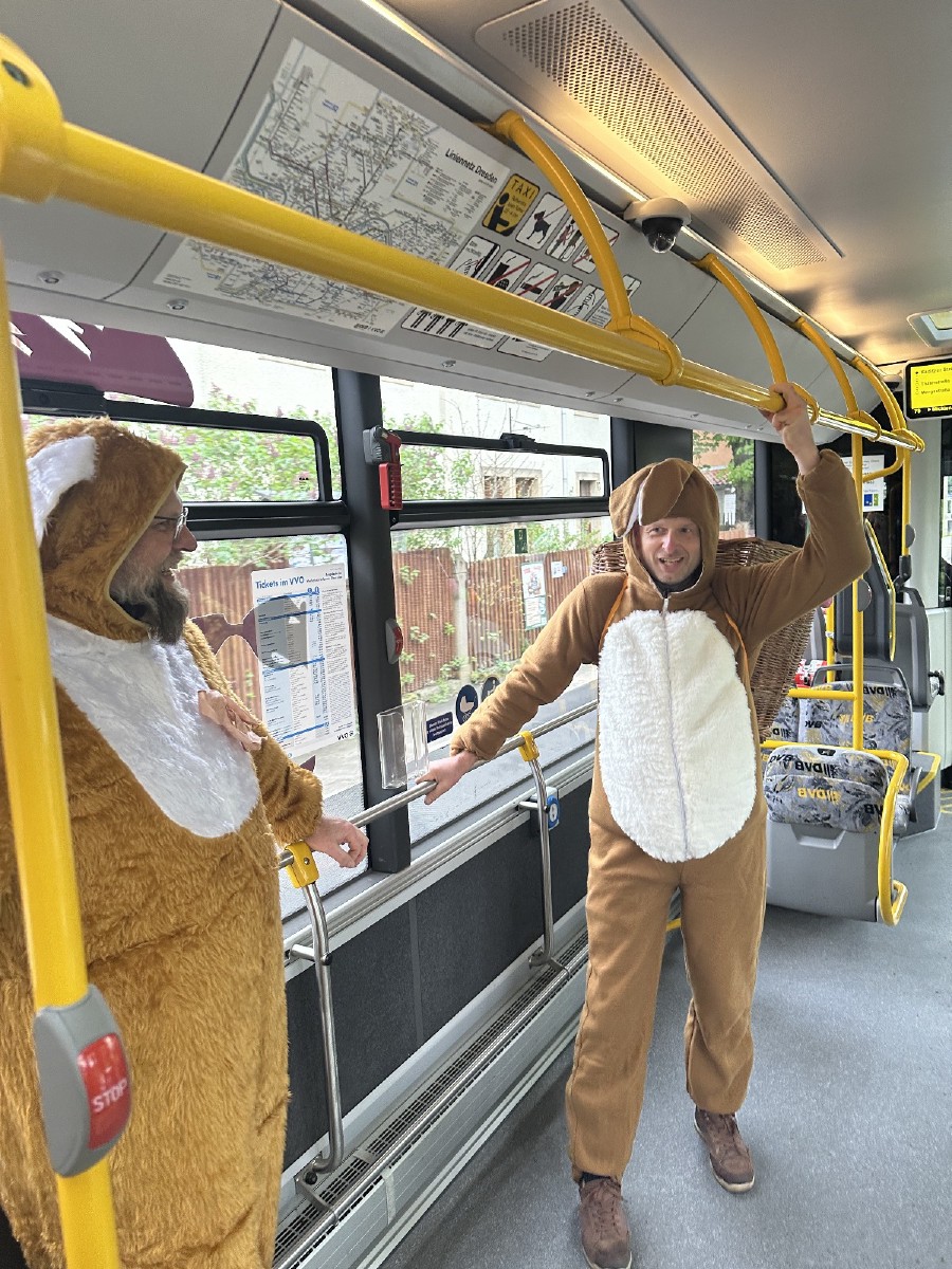 Schon im Vorfeld gab es auf Übigau´s Straßen geheimnisvolle Plakate mit zwei ausgebüchsten mannshohen Hasen – was es damit wohl auf sich hatte?
